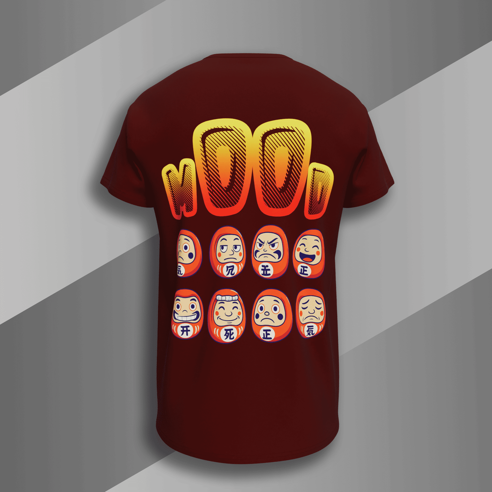 Step into a realm where fashion meets expression with our exclusive Maroon Mood T-shirt. This captivating tee doesn’t just make a statement; it embodies a canvas of emotions through its stunning design featuring an array of colorful Daruma dolls. Inspired by the traditional Japanese talisman, each doll represents a unique feeling, allowing you to express your mood effortlessly while looking effortlessly stylish.
